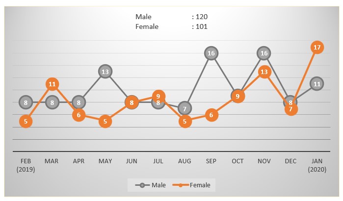 2019/2020 நிதியாண்டு காலப்பகுதியில் நல்லடக்கம் செய்யப்பட்ட 221 ஜனாஸாக்களின் மாதந்த சுருக்கம்