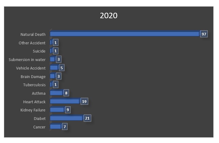2020/2021 ம் நிதியாண்டில் நல்லடக்கம் செய்யப்பட்ட 175 ஜனாசாக்களின் நோய் அடிப்படையிலான சுருக்கம்.